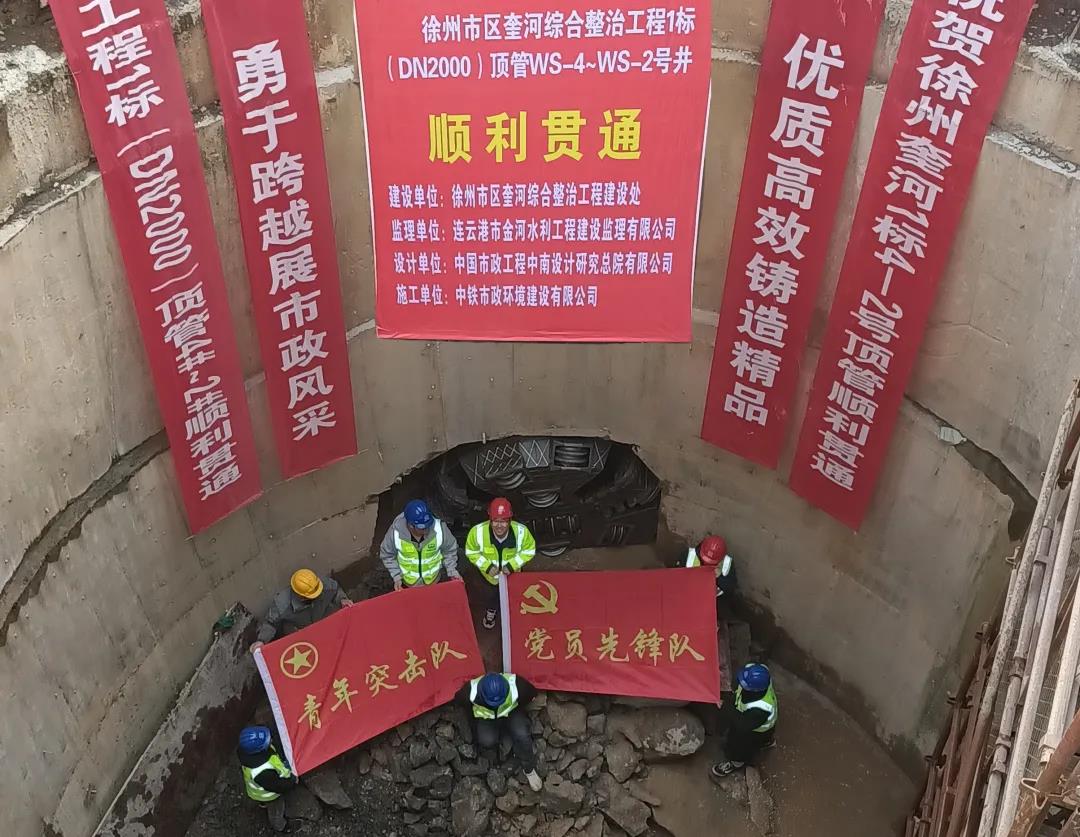 12月14日上午,徐州市區奎河綜合治理1標項目WS-4#~WS-2#段頂管順利貫通。...
