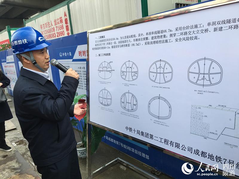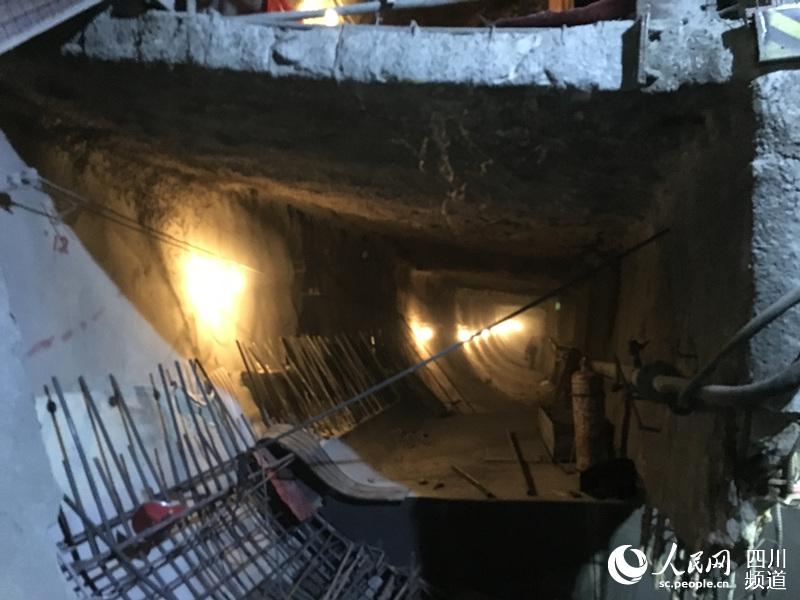 在成都二環路北一段高架橋的下方,地鐵七號線西南交大站—九里堤站的隧道正在施工,橋基從隧道旁“擦肩而過”,最近的地方僅有2.8米。為了保證路面交通暢通和高架橋的穩定,地鐵施工放棄盾構機,首次采用雙側壁導坑法分六步,人工開挖。
