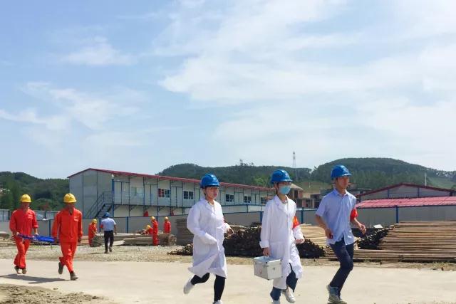 本次演練設(shè)定2018年第1號臺風(fēng)來臨,演練分為三種場景:福州市氣象臺分別發(fā)布黃色、橙色、紅色預(yù)警信號,市防指揮部依次啟動III級、Ⅱ級、I級響應(yīng)預(yù)案。目演練模擬了基坑排水不暢搶險排澇、施工現(xiàn)場設(shè)備材尚未加固,臨建松動、辦公生活區(qū)用電設(shè)備突然全部停止作業(yè)、搶險員在材料廠負(fù)傷,傷勢較重等場景。針對以上情況,抗臺組立即組織人員將現(xiàn)場材料集中固定,就地加固;排洪組立即疏通排水系統(tǒng),組織機(jī)械加大加寬排水溝,增設(shè)水泵加快排水;電力保障組啟動發(fā)電機(jī)組迅速恢復(fù)供電,確?;影踩?;生活醫(yī)療組立即趕往現(xiàn)場,對傷員進(jìn)行初步處理,聯(lián)系瑯岐當(dāng)?shù)蒯t(yī)院,詳細(xì)描述傷員情況,請求救護(hù)車及時到位。