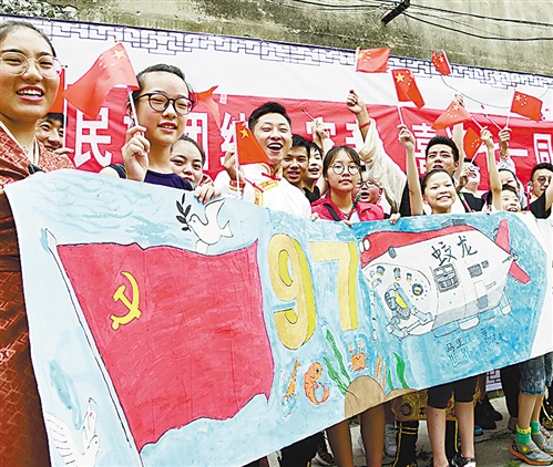 6月27日,江蘇大學(xué)各族大學(xué)生和社區(qū)的小學(xué)生一起畫長卷迎接中國共產(chǎn)黨成立97周年。當(dāng)日,大學(xué)生來到鎮(zhèn)江市金山街道楊家門社區(qū),開展“民族團(tuán)結(jié)一家親 喜迎‘七一’同歡慶”活動(dòng),各族大學(xué)生與社區(qū)的小學(xué)生共同描畫長卷、載歌載舞頌黨恩。石玉成攝